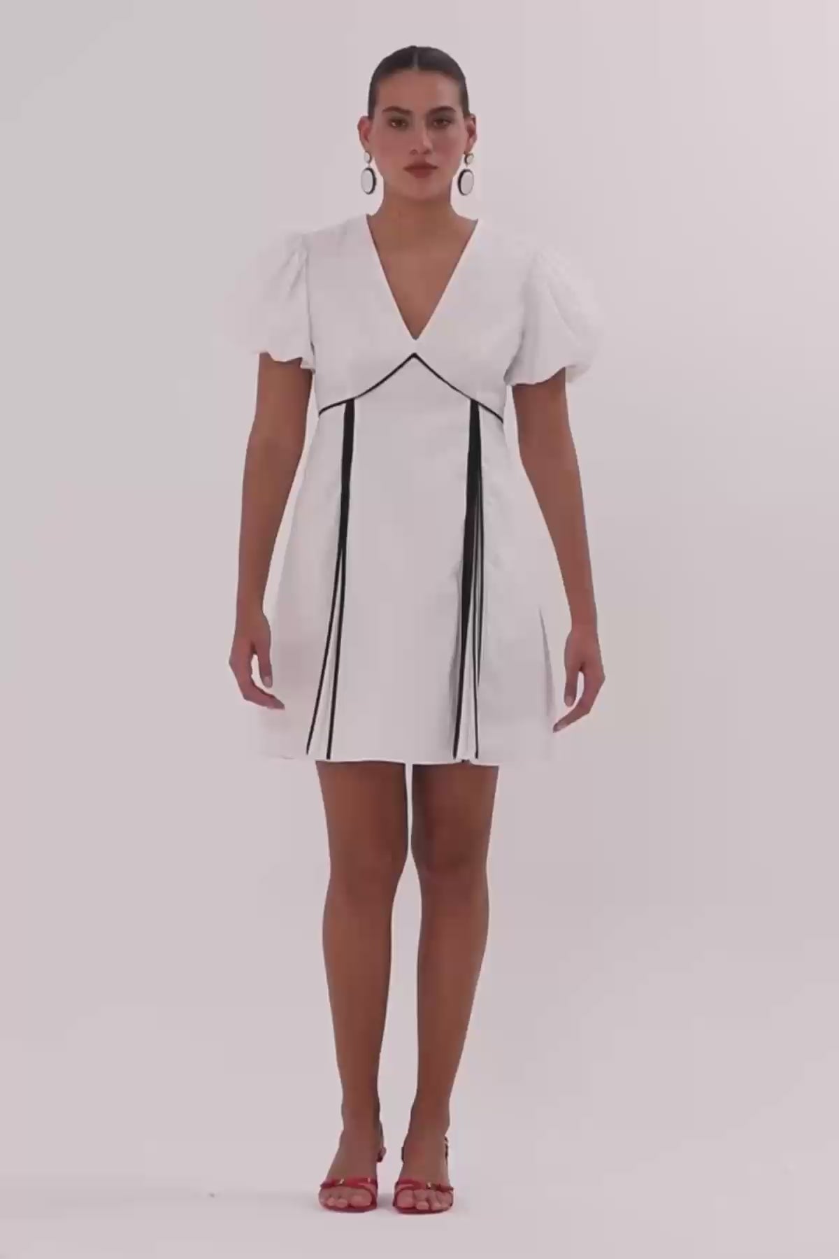 V Yaka Kısa Kollu Kısa Elbise