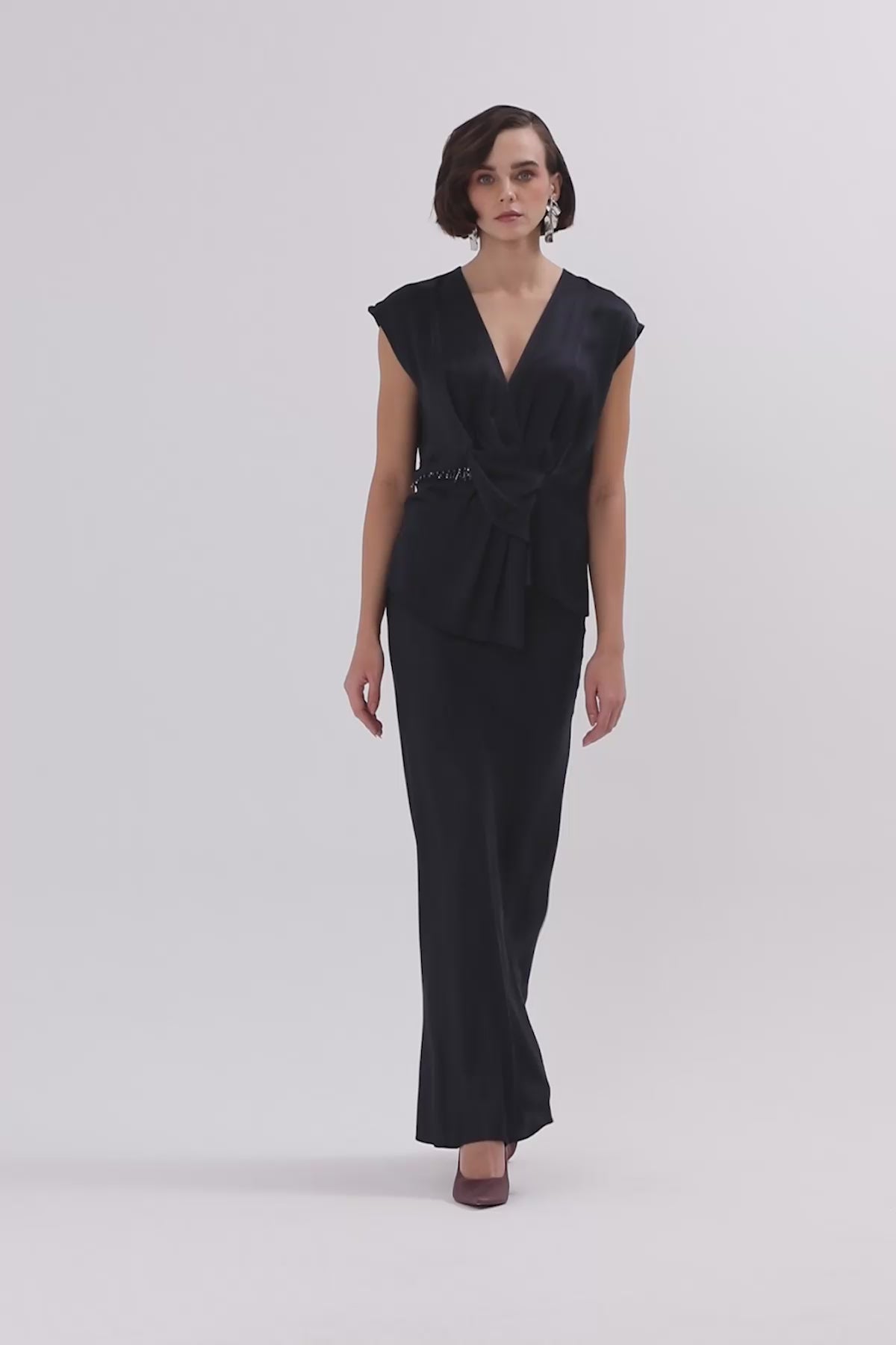 V Yakalı Bluz Ve Uzun Etekli Takım