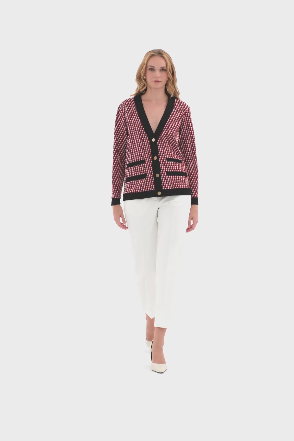 V Yakalı Süs Cepli Ceket