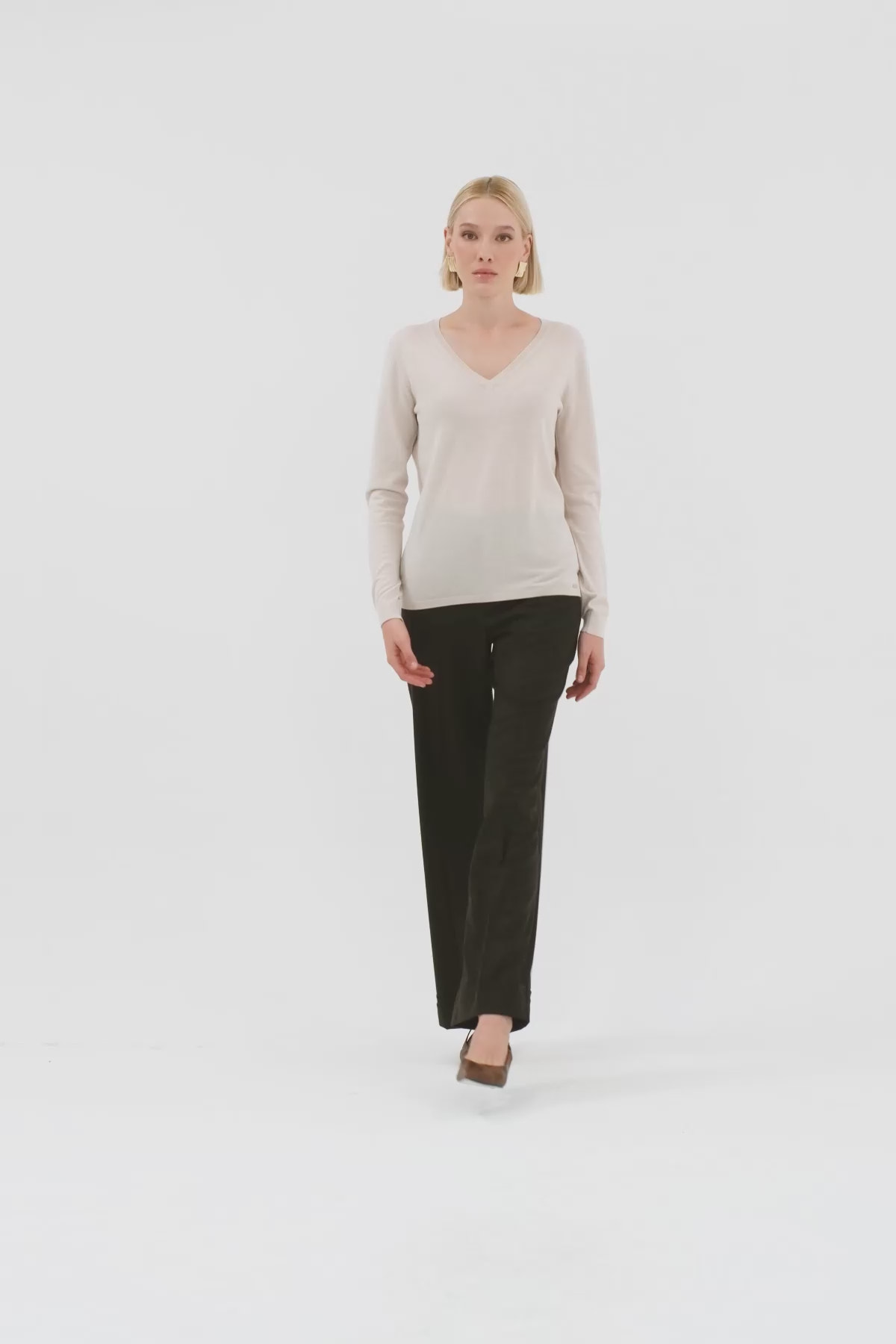 V Yakalı Uzun Kollu Yün Karışımlı Kazak