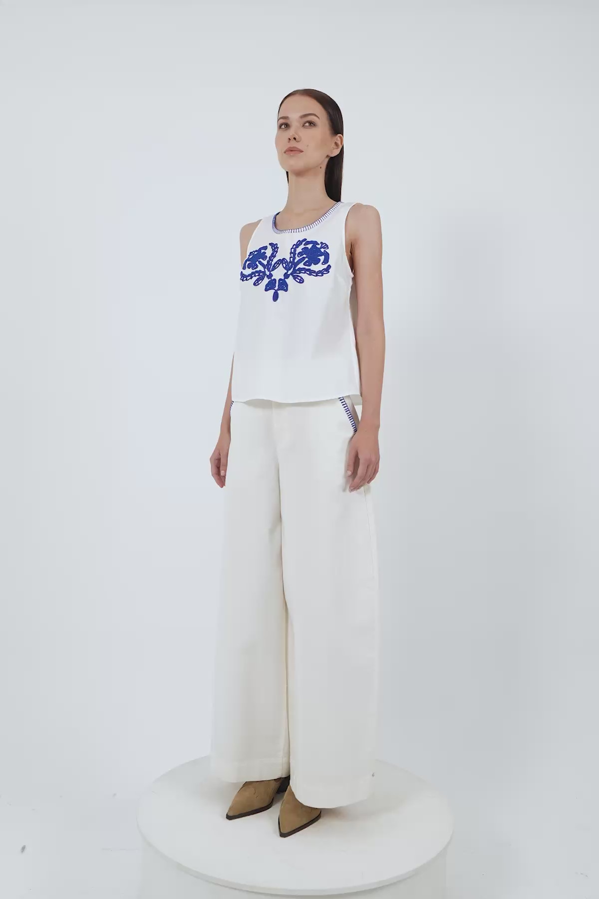 Yaka Nakışlı Kolsuz Bluz