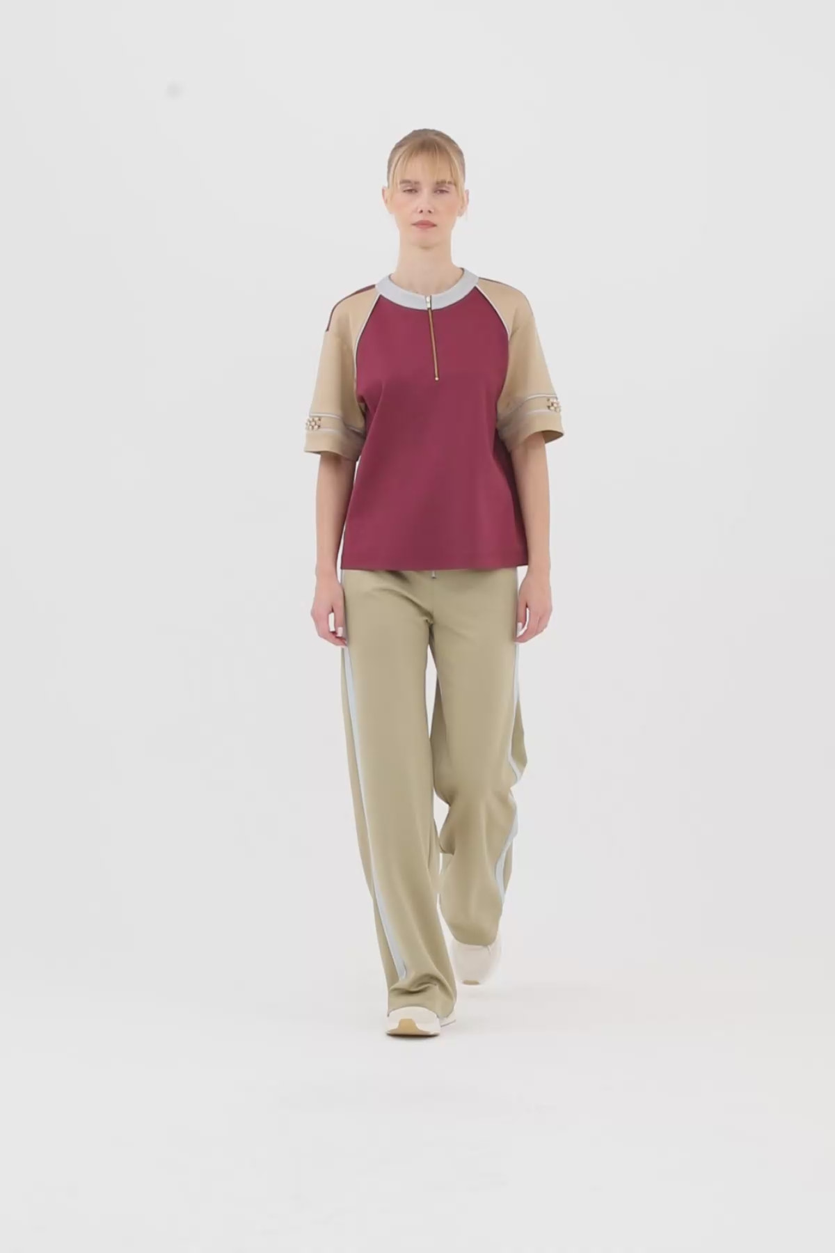 Yakası Fermuarlı Kolları Aksesuarlı T-Shirt