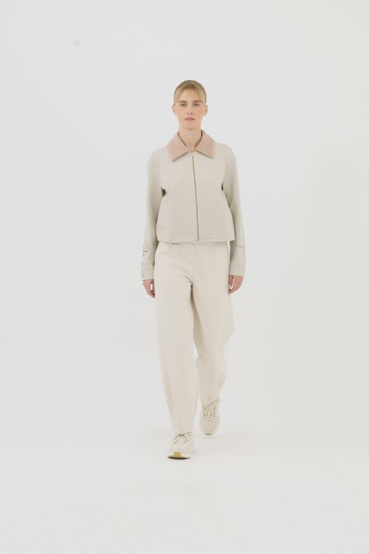 Yakası Triko Detaylı Ön Orta Apoletli Ceket