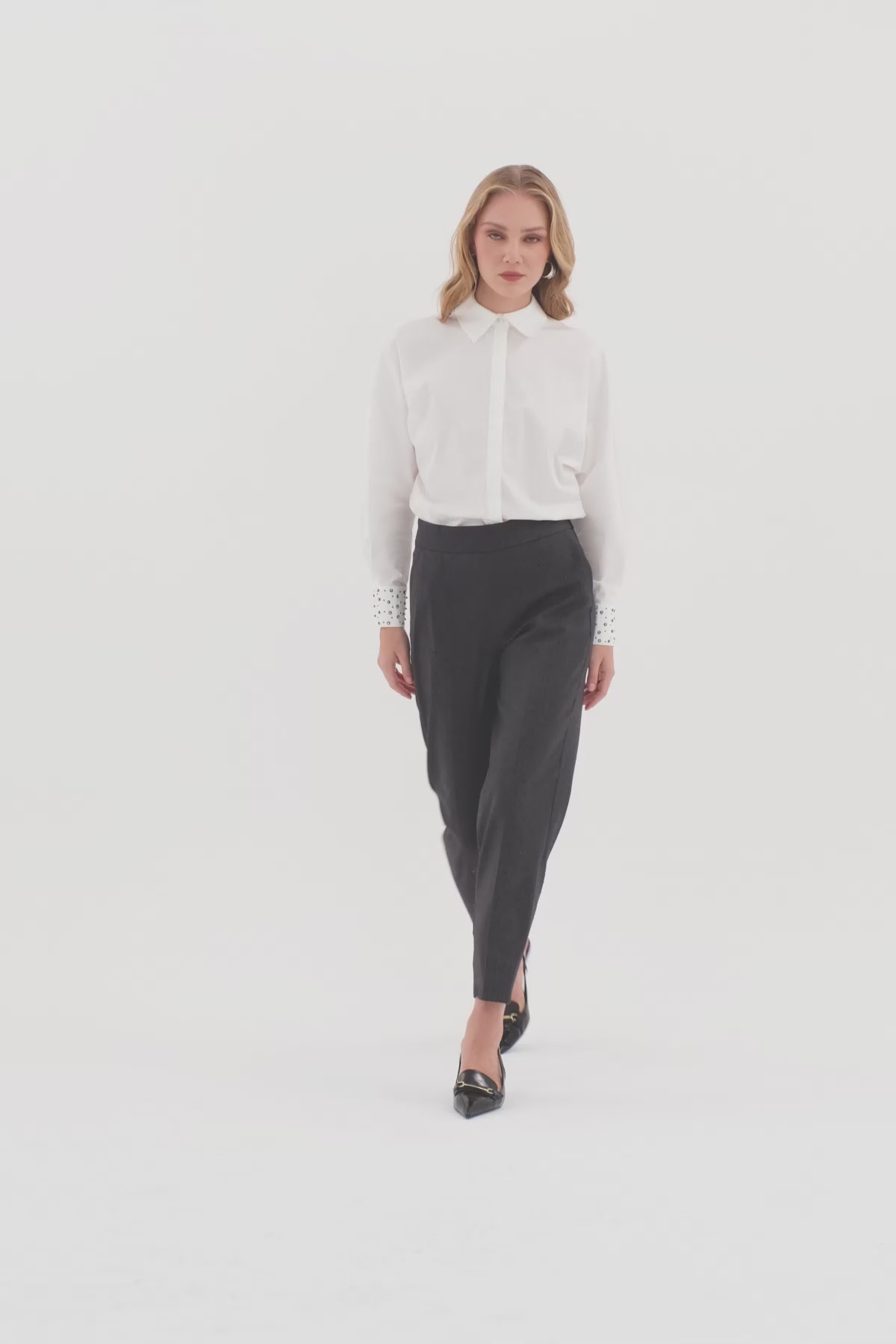 Yandan Gizi Fermuarlı Bilek Boy Taşlı Pantolon