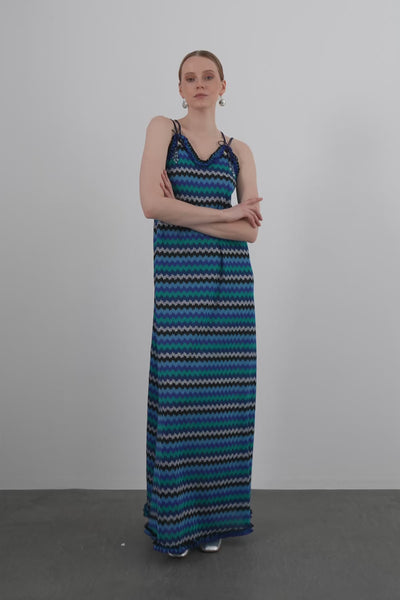 Yanlardan Yırtmaç Detaylı Askılı Uzun Elbise