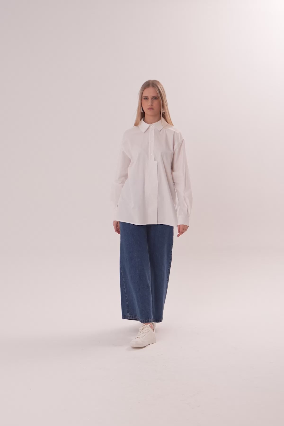 Yanlardan Yırtmaçlı Uzun Kollu Gömlek