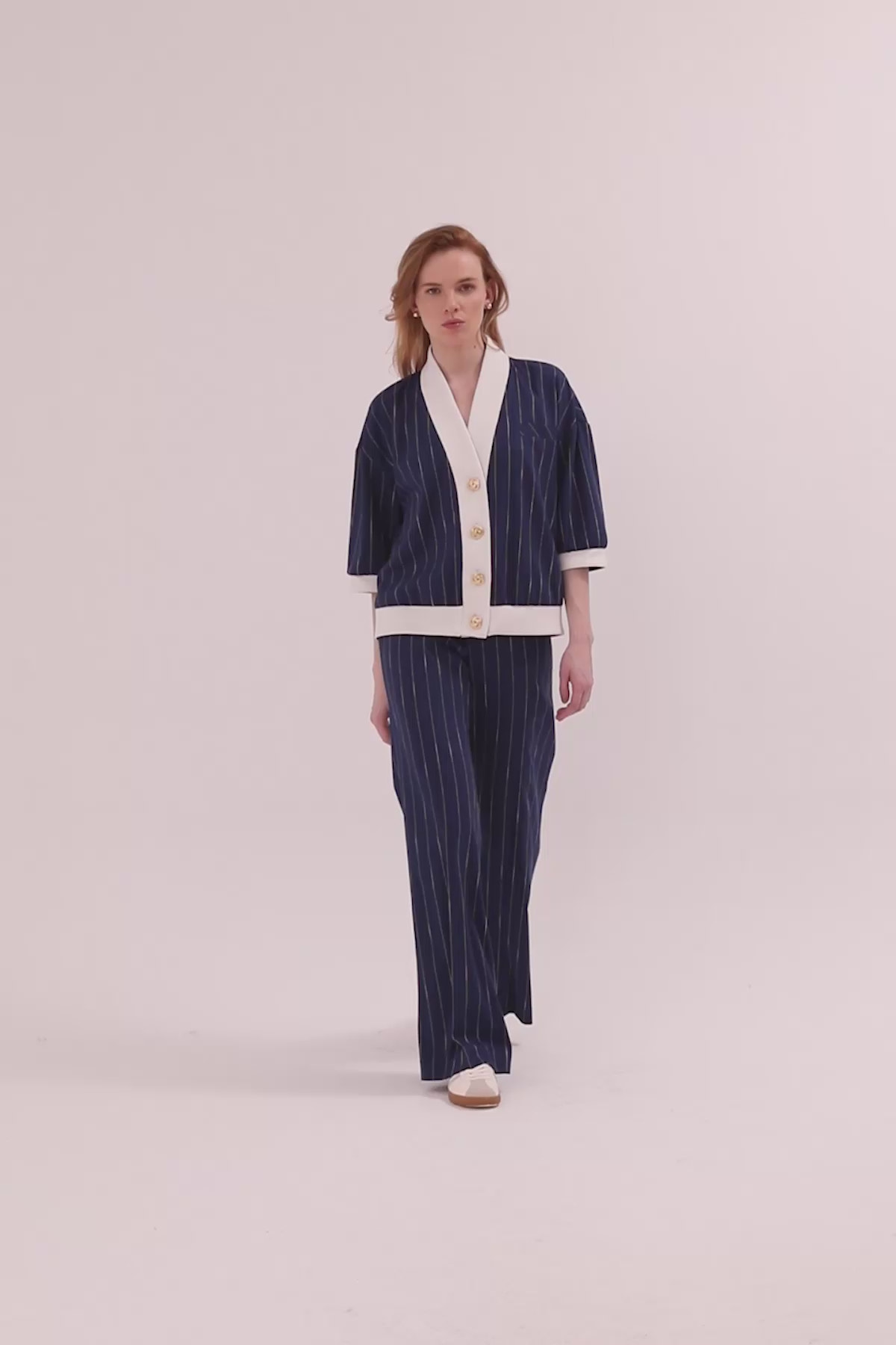 Yarım Kollu Ceket Ve Palazzo Pantolonlu Takım