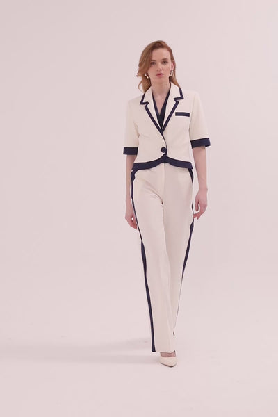 Yarım Kollu Kısa Ceket Ve Pantolonlu Takım