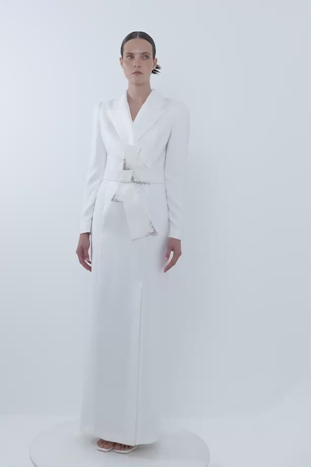 Yırtmaçlı Erkek Yaka Uzun Abiye Elbise