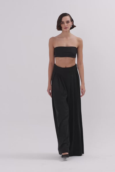 Yüksek Belli Pili Detaylı Bol Pantolon
