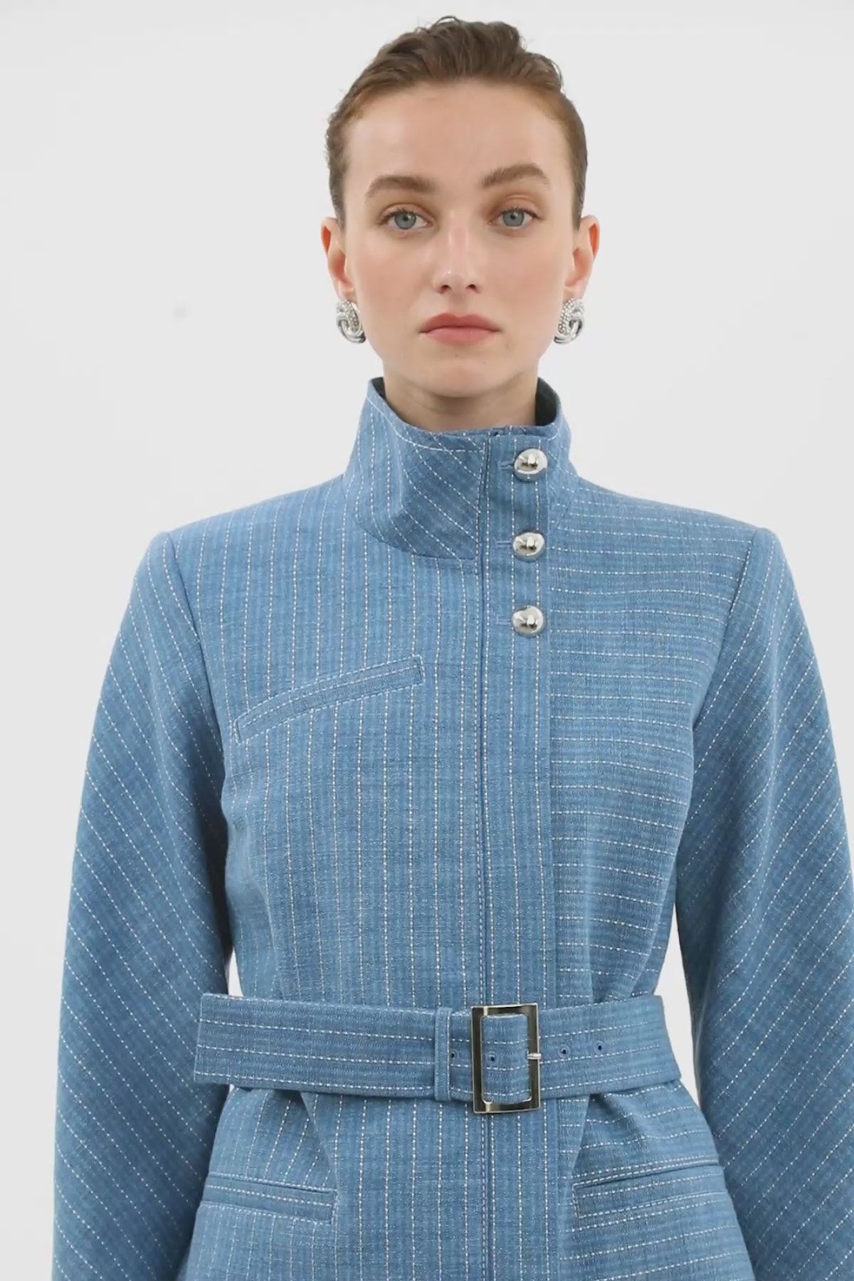 Kemer Ve Düğme Detaylı Uzun Kollu Ceket
