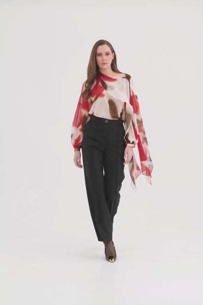 Yün Karışımlı Dantel Detaylı Siyah Pantolon