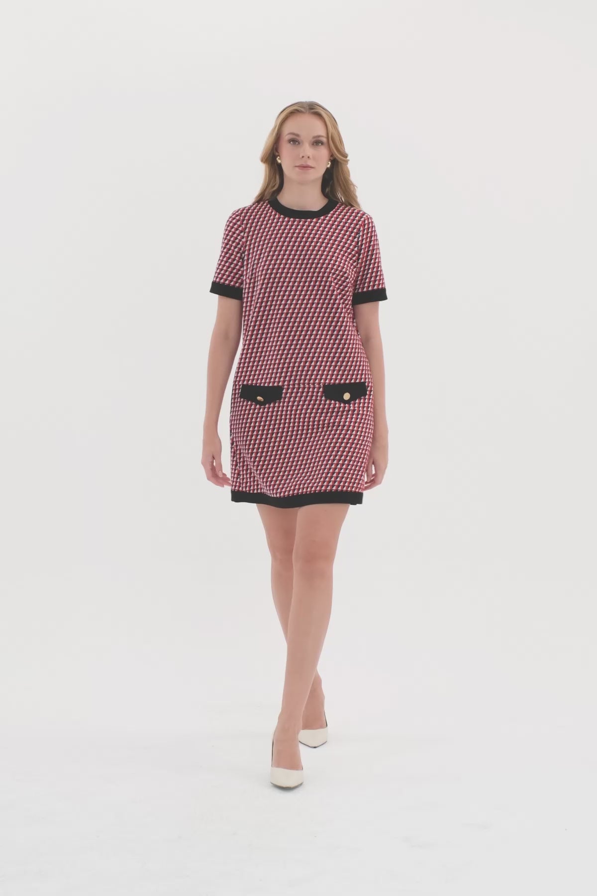 Yuvarlak Yaka Cepli Kısa Kollu Elbise