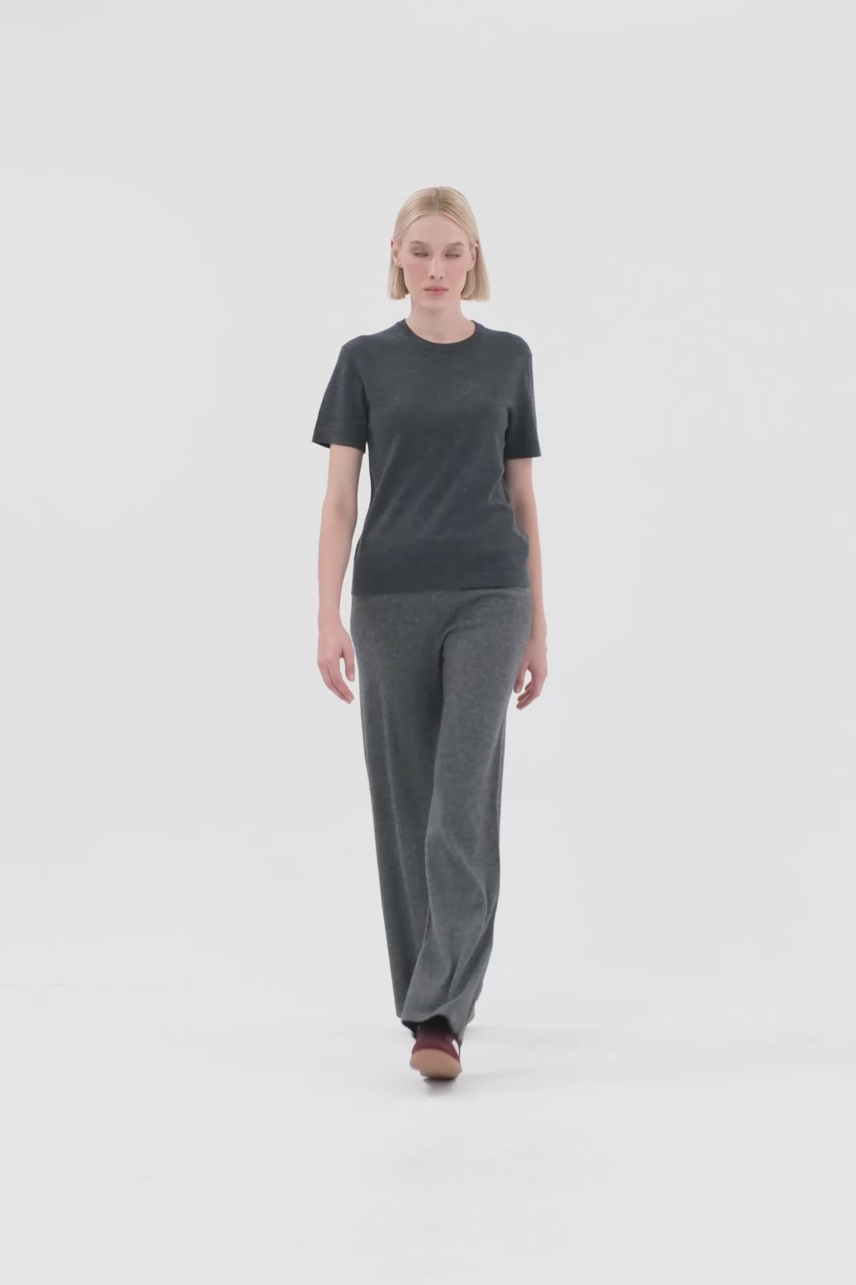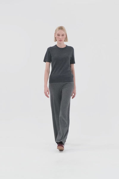 Yuvarlak Yaka Kısa Kollu Gri Bluz