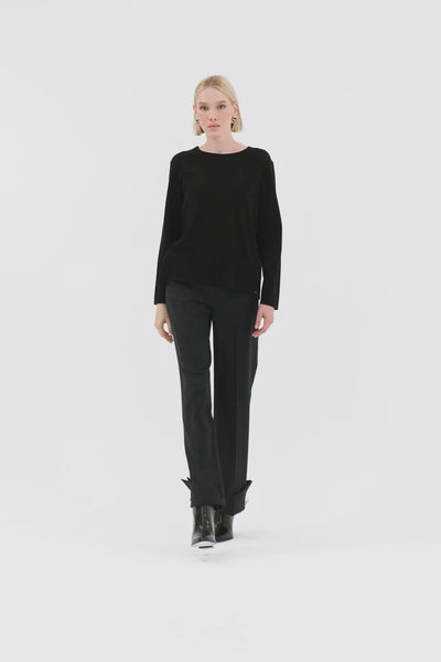 Yuvarlak Yaka Uzun Kollu Düz Triko Bluz