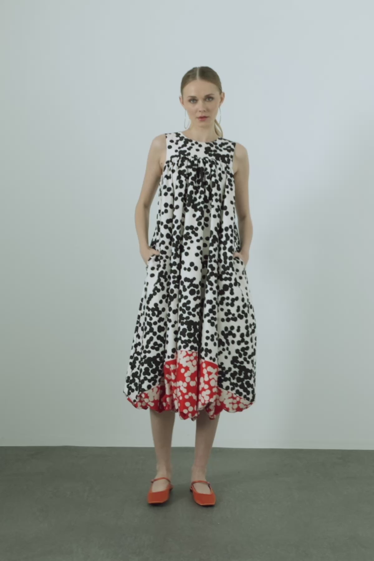 Yuvarlak Yakalı Sıfır Kollu Astarlı Midi Elbise