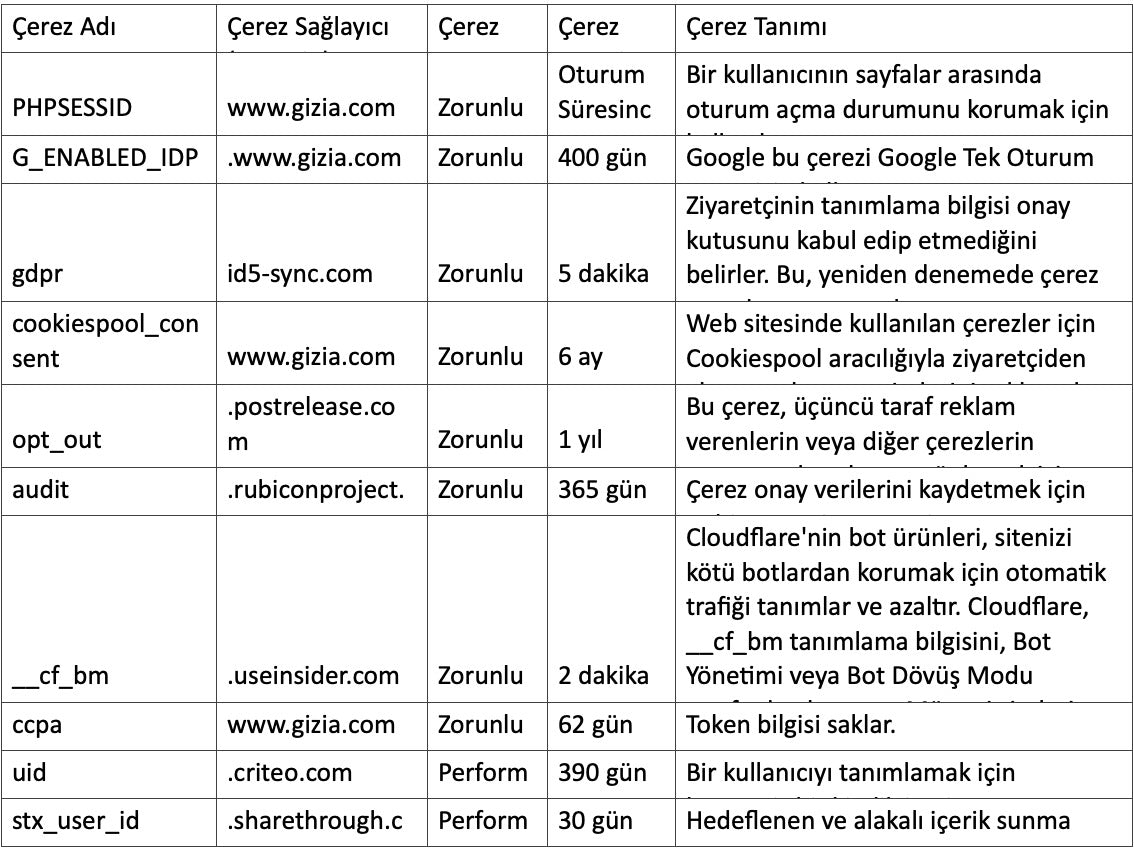 e-posta Adresi: info@gizia.com