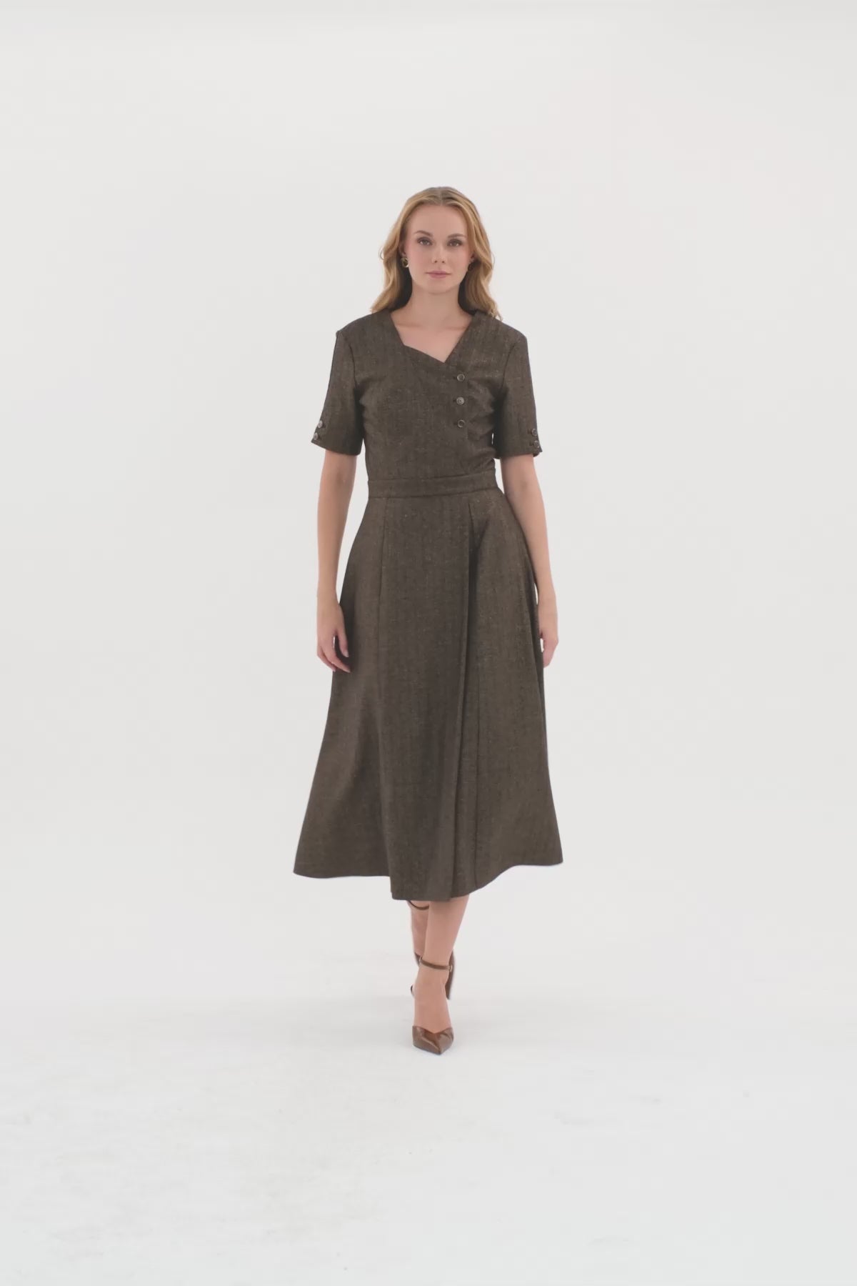 Asimetrik Yaka Arkası Fermuar Kapamalı Elbise